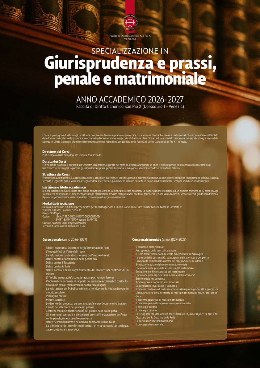 Specializzazione in Giurisprudenza e prassi, penale e matrimoniale